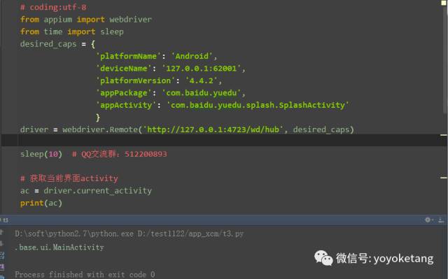 1.打开app后,先sleep10秒,等app完全启动完成进入主页面,然后获取当前界面的activity